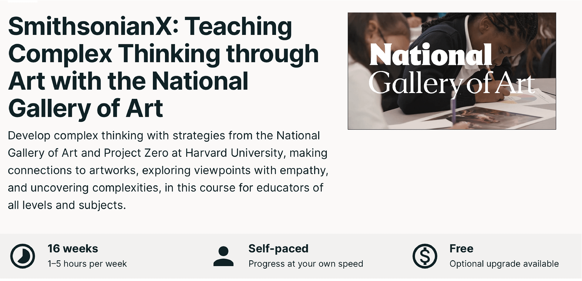 Educators of all levels and subjects learn how to expand students’ complex thinking skills including making connections to artworks, exploring viewpoints with empathy, and uncovering complexities.